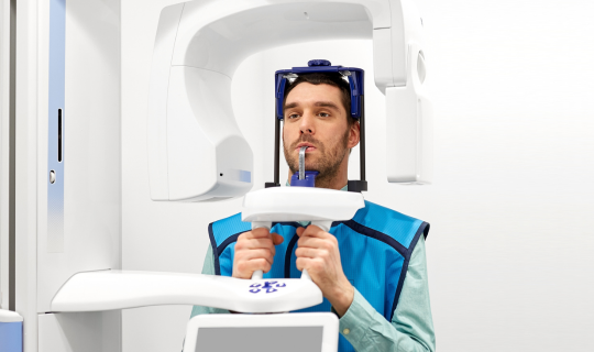 3. Krátká expozice – rentgenový aparát se otočí kolem hlavy pacienta a snímek je pořízen během několika sekund.